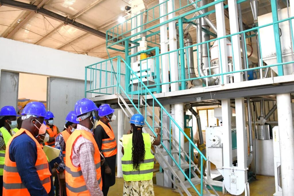Dans la même localité, les ministres ont également visité l’entreprise Bio-graine, spécialisée dans la transformation et la commercialisation de produits céréaliers, notamment la farine, le son et la semoule de maïs, ainsi que d’autres céréales locales. Cette entreprise a bénéficié d’un financement de 307 millions de FCFA, dont 30 millions de FCFA en prises de participation, correspondant à 15 % du capital.