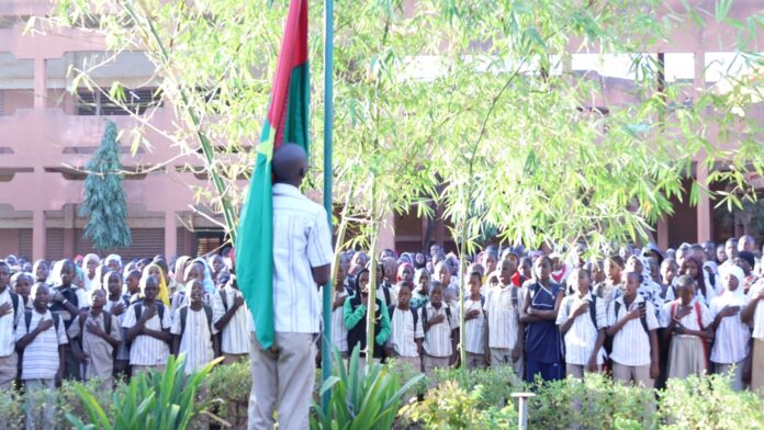 Le lycée municipal Vénégré de Ouagadougou a accueilli, ce lundi 6 avril 2026, la montée des couleurs du premier lundi du mois, dans le cadre des Journées d’engagement patriotique et de participation citoyenne (JEPPC). La cérémonie a été présidée par le ministre de l’Enseignement secondaire, de la Formation professionnelle et technique, Moumouni Zoungrana.