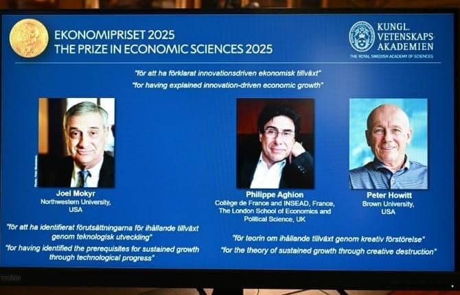 L’Académie royale des sciences de Suède a décerné, ce lundi 13 octobre 2025, le prix Nobel d’économie à l’Américano-Israélien Joel Mokyr, au Français Philippe Aghion et au Canadien Peter Howitt. Les trois chercheurs sont récompensés pour leurs travaux sur l’impact des nouvelles technologies et de l’innovation sur la croissance économique.