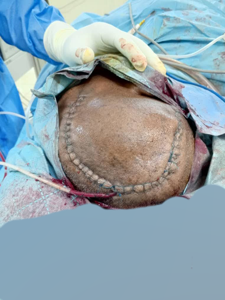 Selon le service de communication du CHR, la patiente avait été admise pour un déficit de l’hémicorps gauche accompagné de crises d’épilepsie. Sans antécédents médicaux connus, elle a subi un scanner (TDM) cérébral qui a révélé une tumeur frontale droite, identifiée comme un méningiome.